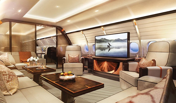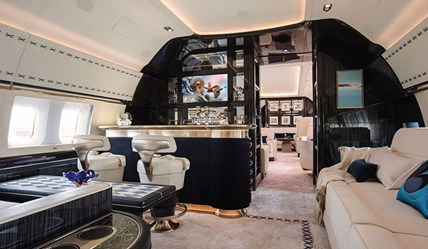 High-end Interiors: Private jets are often designed with high-end interiors that feature premium materials such as leather, fine woods, and polished metals. The cabins are also often equipped with mood lighting and advanced climate control systems to enhance the passenger experience.